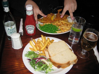 魚・・・ということで、Pubで食べた伝統料理。ここは、ガイドブックにも載ってるおススメのPubです。学校のすぐ近くにあるのを発見したので連れてきました。