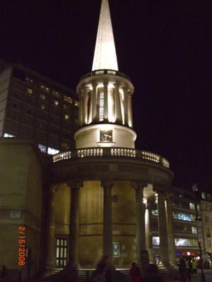 いつも教会はイベントがある日はライトアップされてるんですよ~。これOxford circusと言うロンドン1のショッピング街にあるのに、佇まいはとっても素敵です。