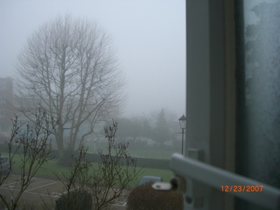目が覚めて「よっしゃー!今日の天気はどうかな?!☆」と思って窓を開けたら霧でした。